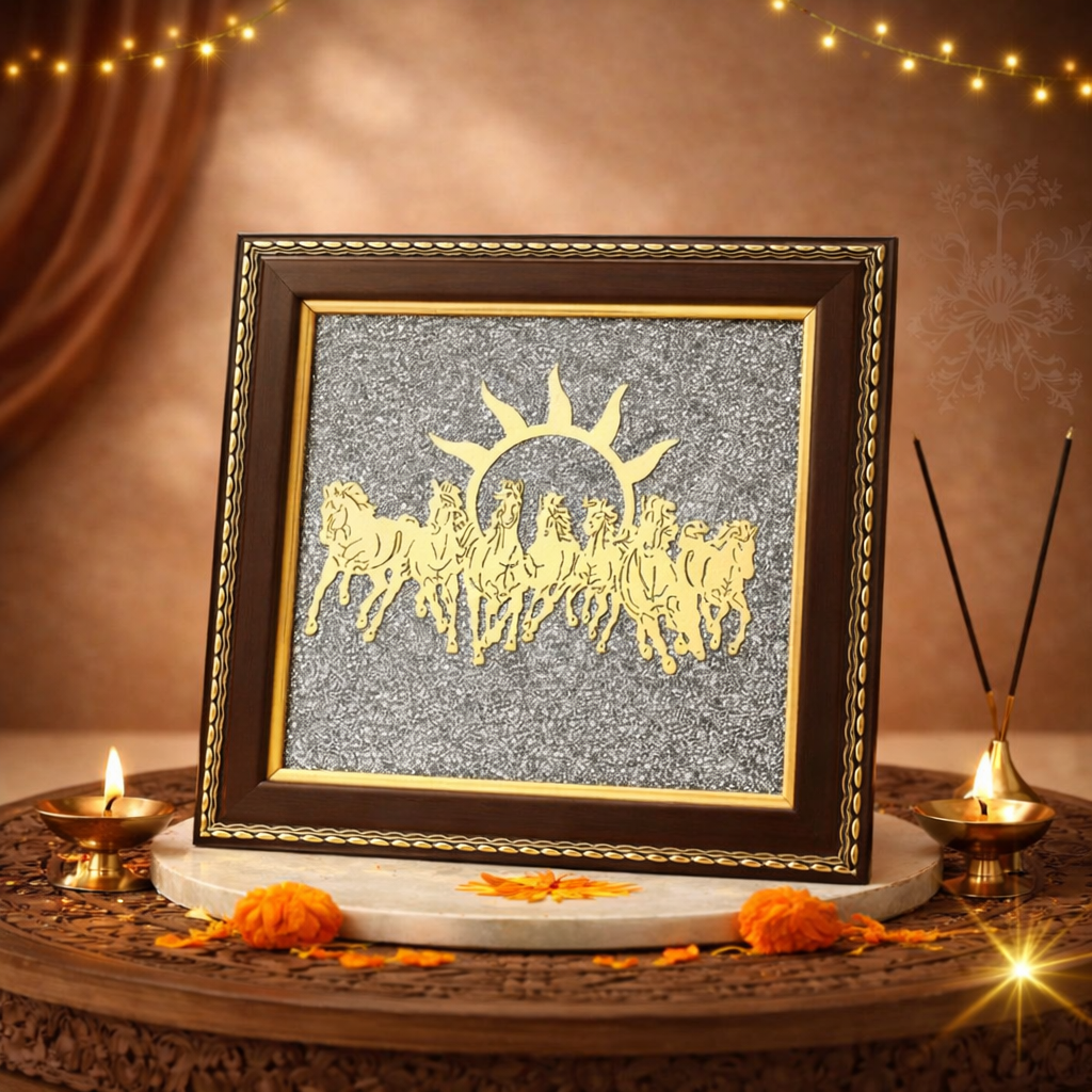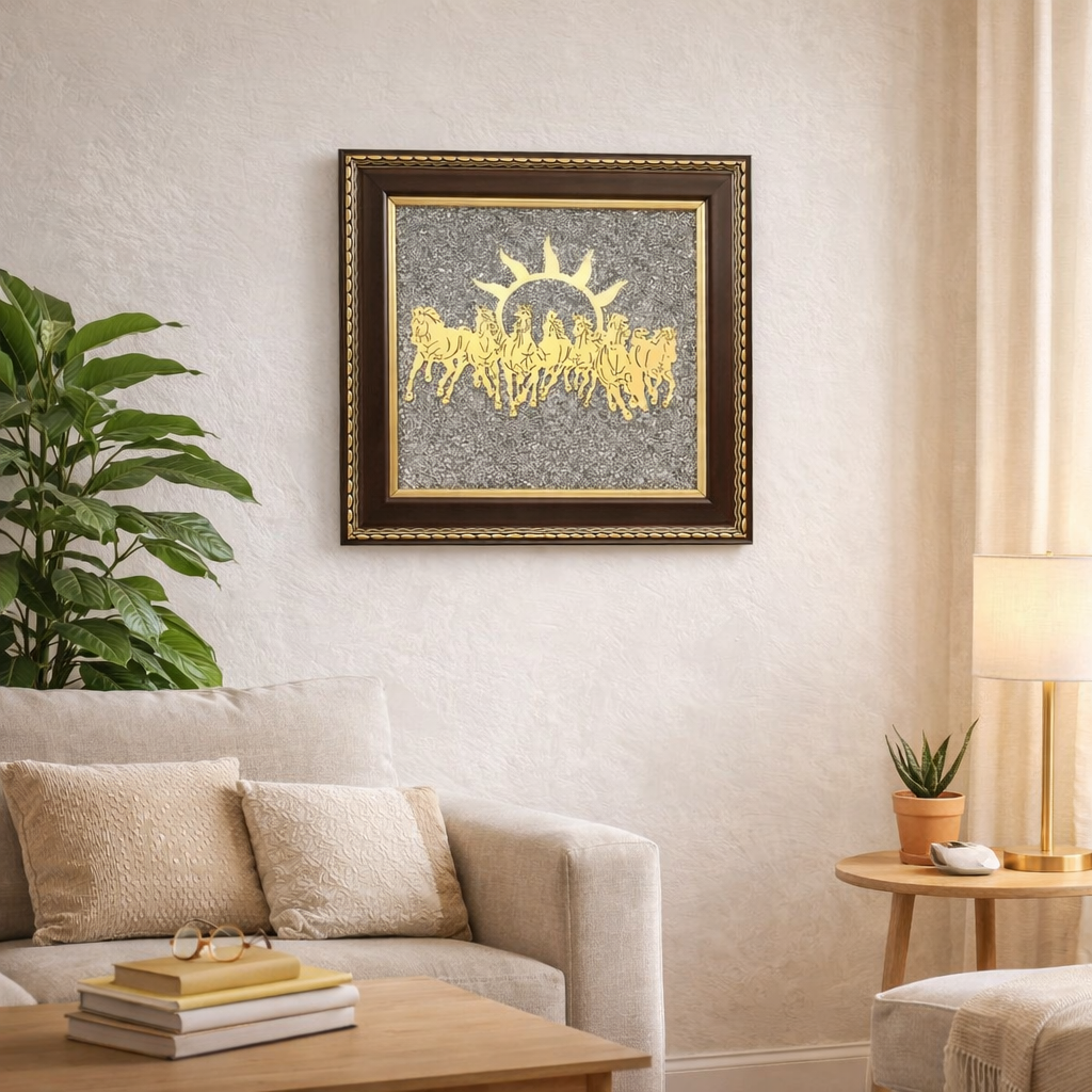 7 Horse Raw Pyrite is a premium vastu and feng shui decorative artifact designed to attract prosperity, success, and positive energy into homes and workplaces. This elegant piece features the symbolic representation of seven running horses crafted in raw pyrite finish, set within a high-quality frame that enhances both its aesthetic appeal and spiritual significance. The seven horses symbolize strength, speed, growth, and continuous progress, while pyrite is widely regarded as a powerful stone associated with wealth attraction and protection from negative energies.